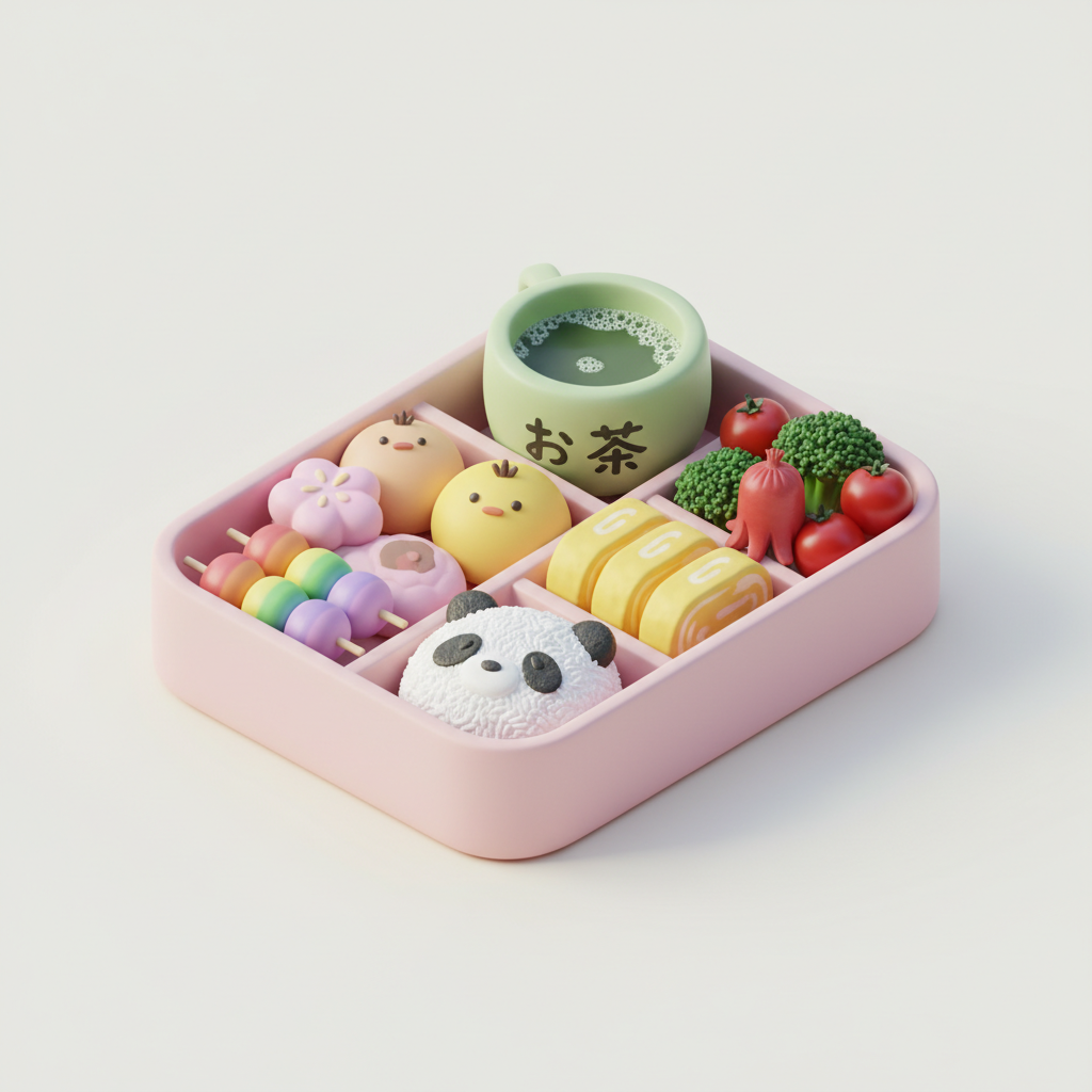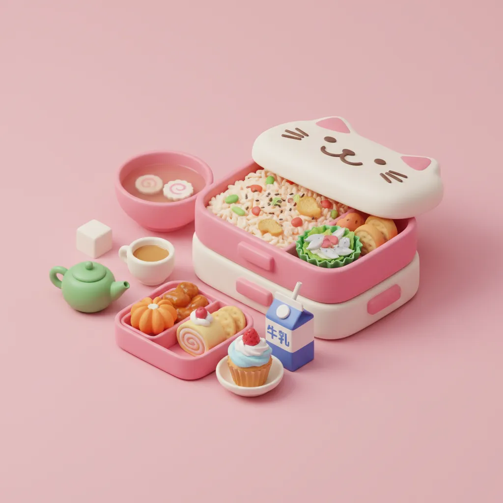 メニューからかわいいお弁当イラストを自動生成。毎日違う絵が楽しめます。
